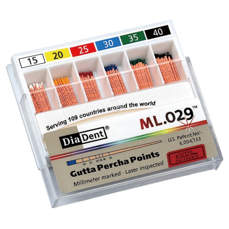 ML.029 Gutta Percha punkti nodrošina ātru un uzticamu risinājumu sakņu kanālu mērīšanai un aizpildīšanai. Tas samazina pārmērīgas izplešanās iespēju. Diametra pielaide +- .-29 nodrošina izcilu pieskaņojumu pilēm. Uzgaļi nesatur kadmiju, lateksu, ir radiopārredzami un ar rokām velmēti.