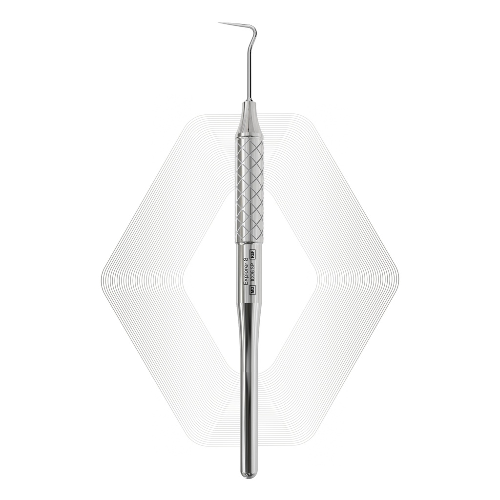 The Explorer 8 is designed for precise detection of caries, calculus, and anatomical irregularities. Its finely tapered working end provides excellent tactile sensitivity, allowing for accurate diagnosis of tooth and soft tissue conditions. The ergonomic handle ensures comfortable grip and optimal control during examination procedures.
