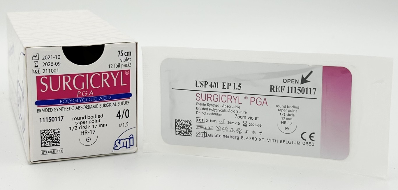SM 11150117 SURGICRYL PGA EP 1.5 USP 4/0 NEEDLE 1/2 CIR TAPER 17 MM / 75 CM