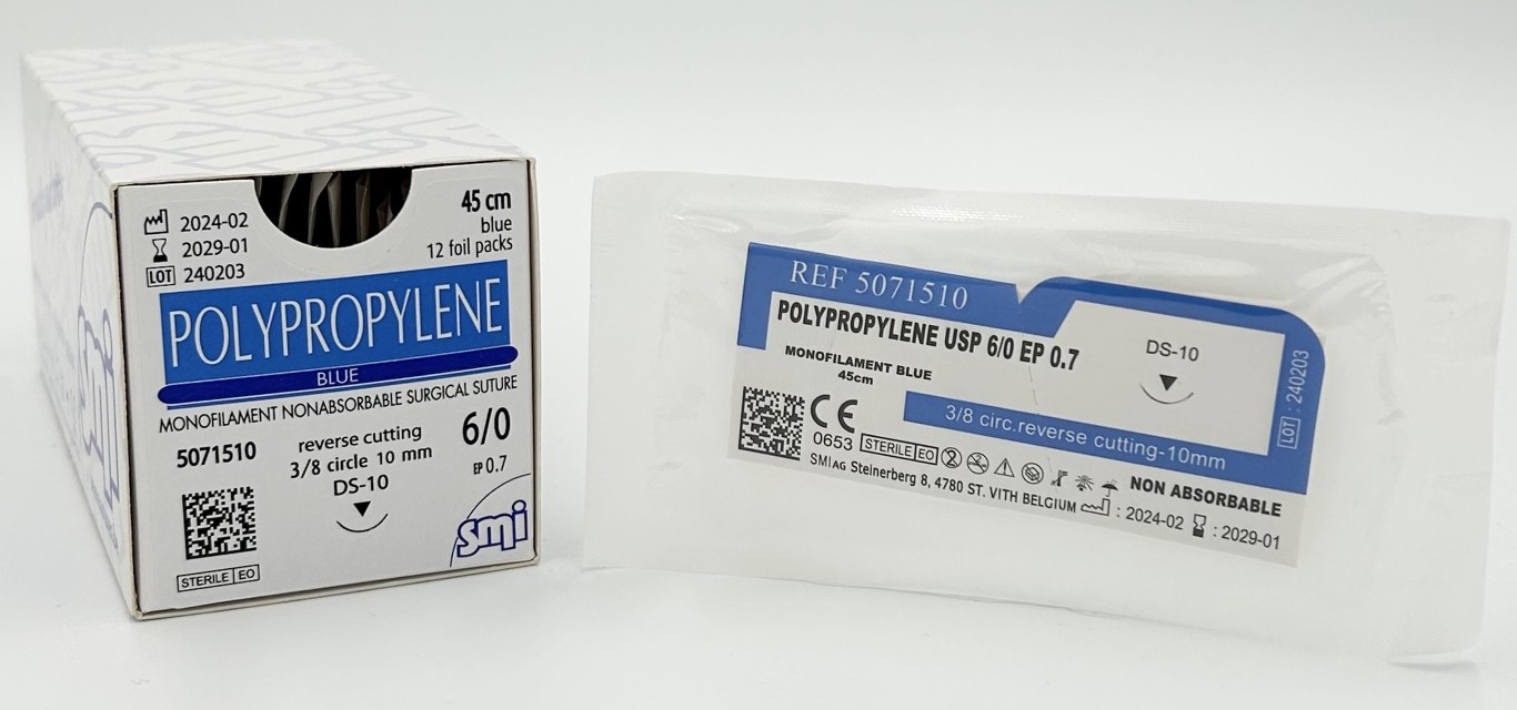 SM 5071510 POLYPROPYLENE BLUE 45 CM EP 0.7 USP 6/0 NEEDLE 3/8 CIR CUTTING 10 MM
