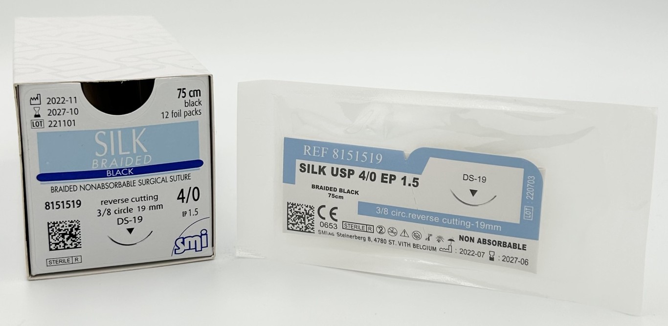 SM 8151519 SILK BLACK 75 CM EP 1.5 USP 4/0 NEEDLE 3/8 CIR REV. CUTTING 19 MM