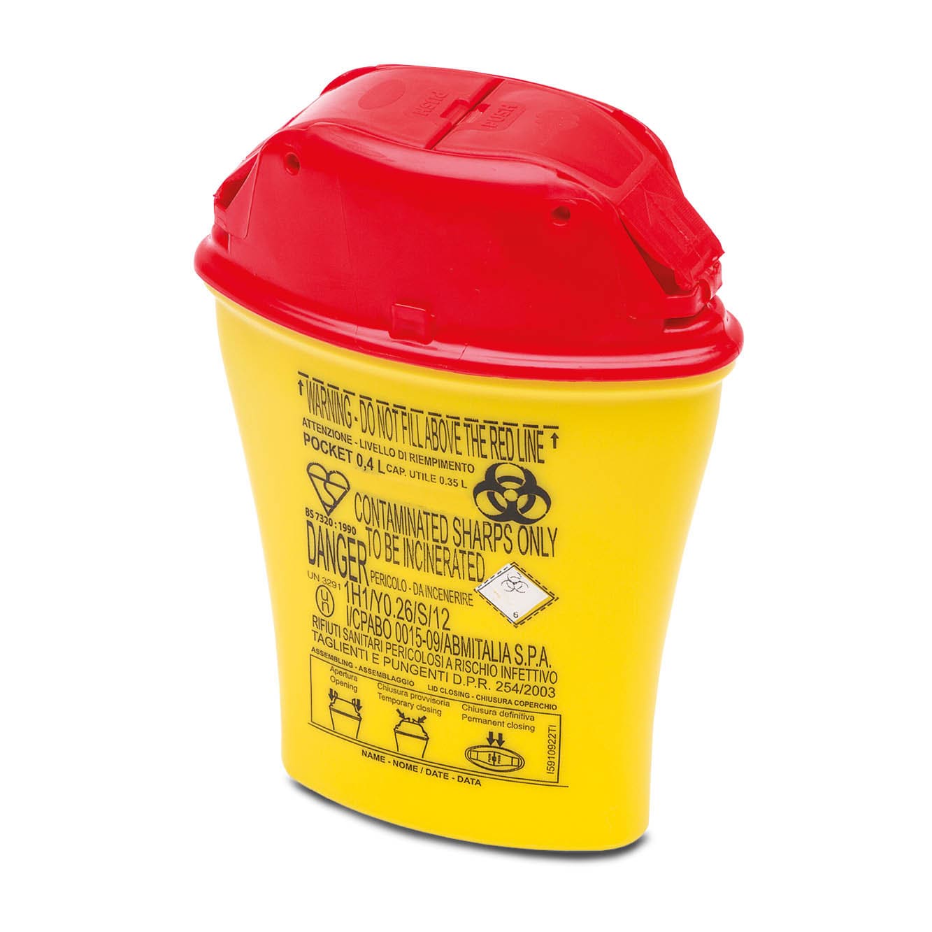 Pocket version. Ergonomic and easy to use with one hand. Double opening system: unhooking of needles and insulin pens and disposal of complete syringe. Possible side hooking