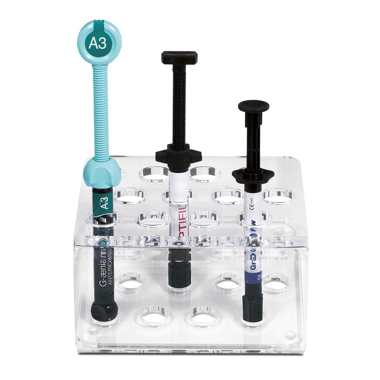 Plexiglass organizer with 12 holes for syringes, standard hole 3,5 cm