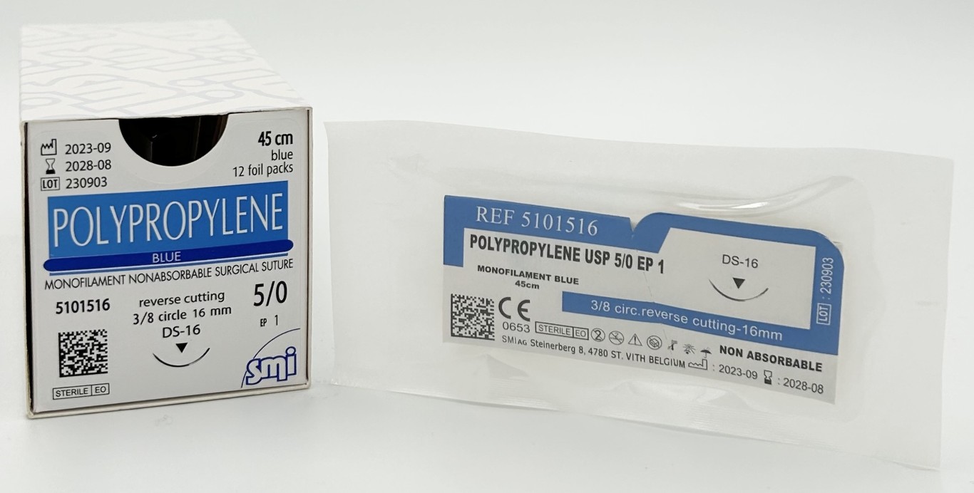 SM 5101516 POLYPROPYLENE BLUE 45 CM EP 1 USP 5/0 NEEDLE 3/8 CIR CUTTING 16 MM