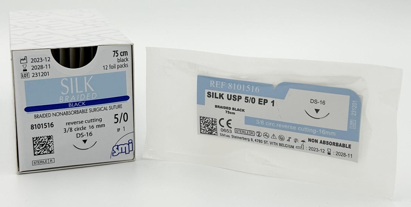 SM 8101516 SILK BLACK 75 CM EP 1 USP 5/0 NEEDLE 3/8 CIR REV. CUTTING 16 MM